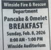 Sunday, February 8th from 8:00am - 1:00pm at the Winside Auditorium for a Pancake Breakfast hosted by the Winside Fire & Rescue Department! There will be omelets, pancakes, sausage, french toast, coffee, juice, and milk available.
