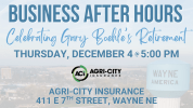 Join us for Business After Hours at Agri-City Insurance in Wayne, where we will be celebrating Gary Boehle's retirement! Thursday, December 4 @ 5:00pm