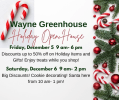 Friday December 5 @ 9am-6pm **Discounts up to 50% off on holiday items and gifts! Enjoy treats while you shop. Saturday December 6 @ 9am-2pm **Big discounts, cookie decorating, and a visit from Santa from 10am-1pm!