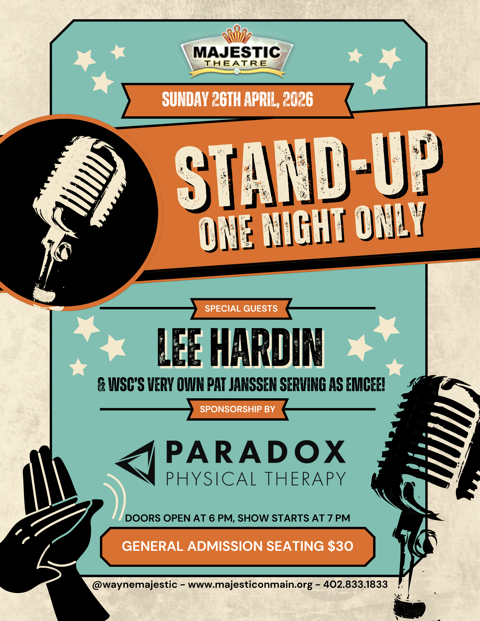 Sunday April 26th @7PM (doors open 1-hour prior to showtime)