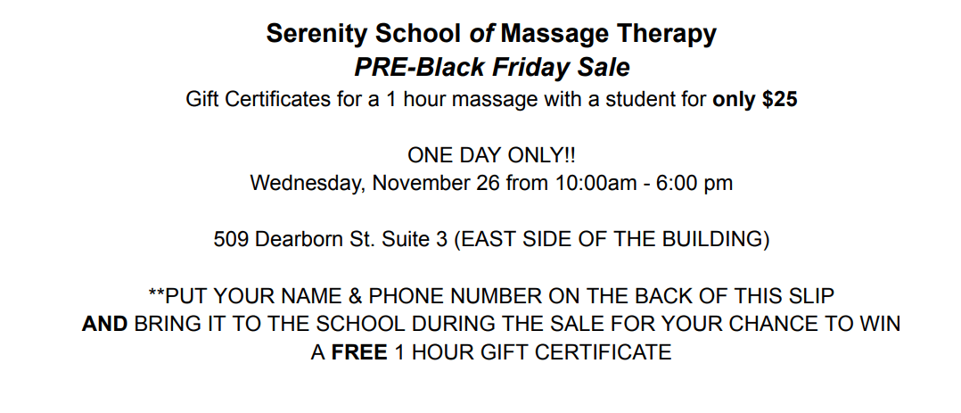 Serenity School of Massage Therapy PRE-Black Friday Sale!