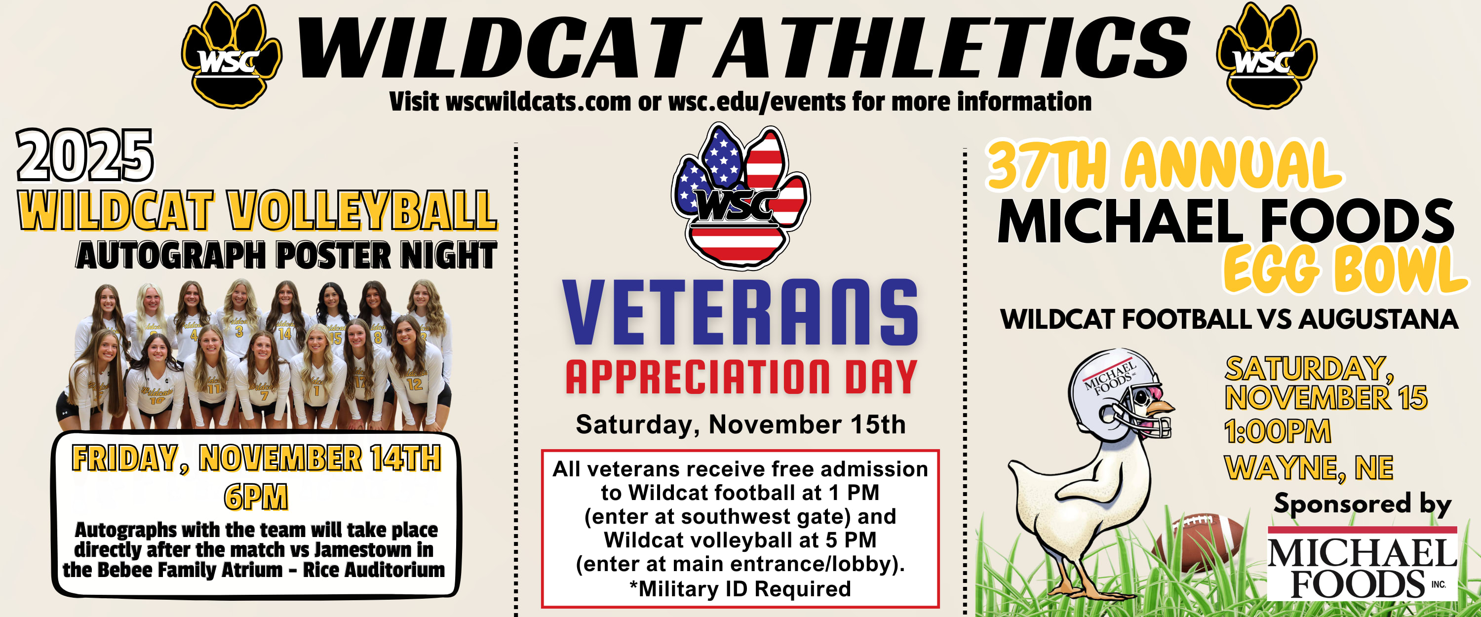 Volleyball vs Northern State: All veterans receive free admission to the Wildcat Volleyball game. *Military ID required. Enter the Main Entrance/Lobby of Rice Auditorium.