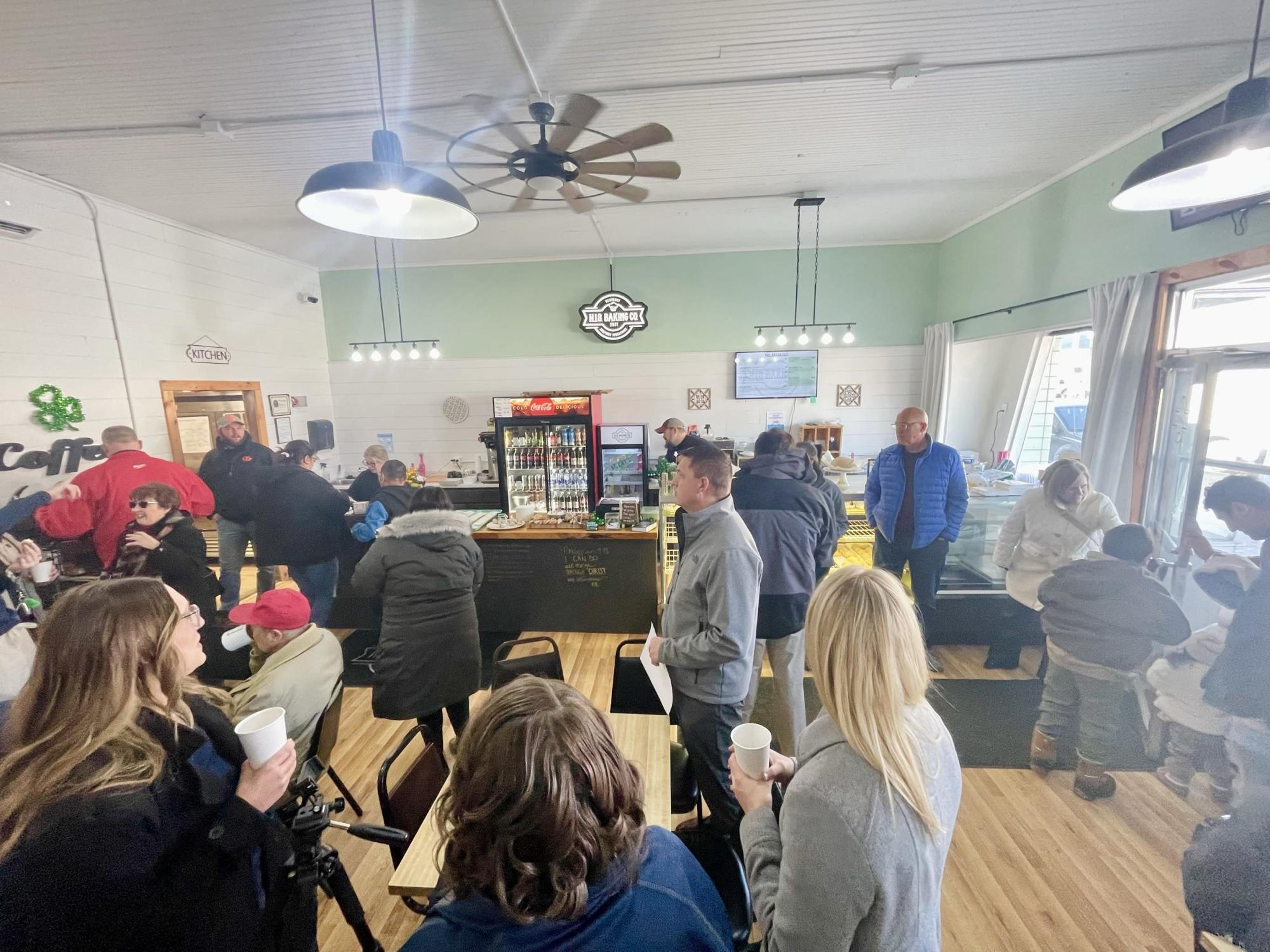 On Friday, February 21st (7 months after their Grand Opening), HIS Baking Co., owned by Chris and Jaclyn Beach, hosted Chamber Coffee followed by an official ribbon cutting ceremony to celebrate their new business at 309 Main Street in Wayne. Approximately 40 attendees consisting of HIS's daily coffee crowd, patrons, local business owners, and Wayne America Ambassadors packed the cozy bakery to socialize and sample artisan bread, cookies, and pastries.