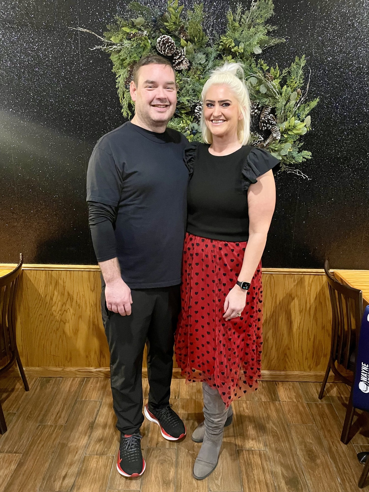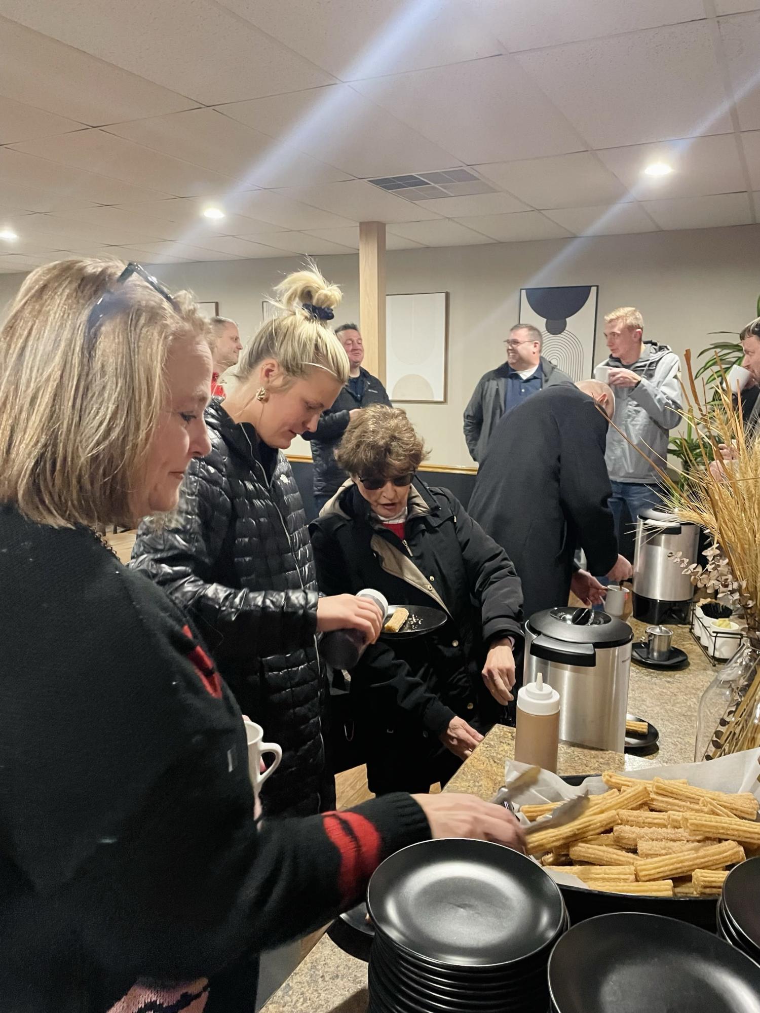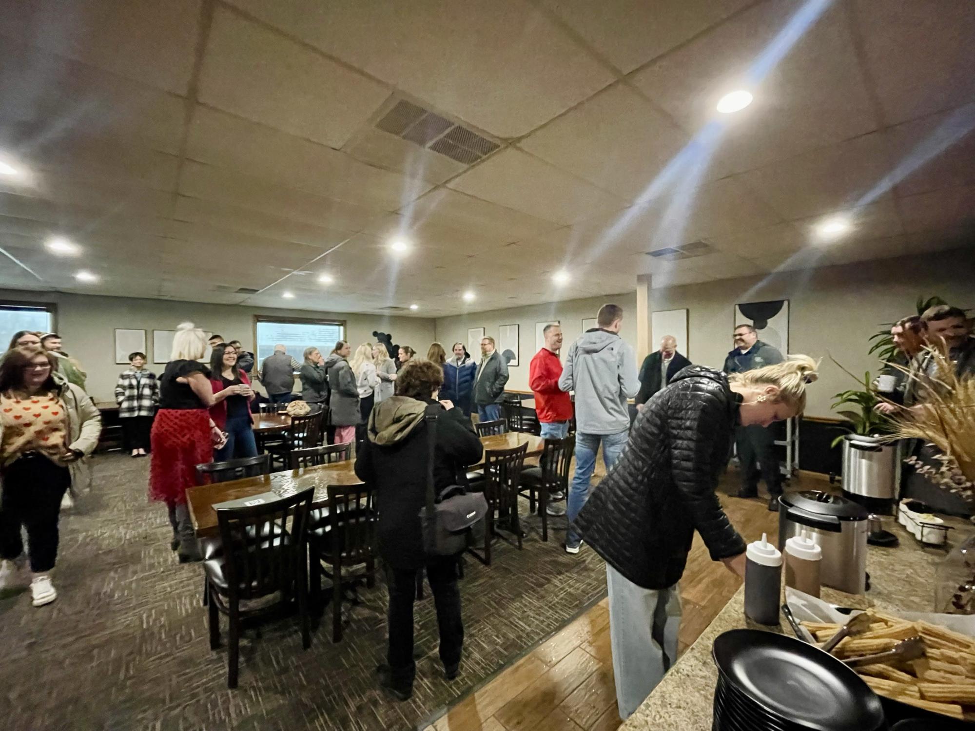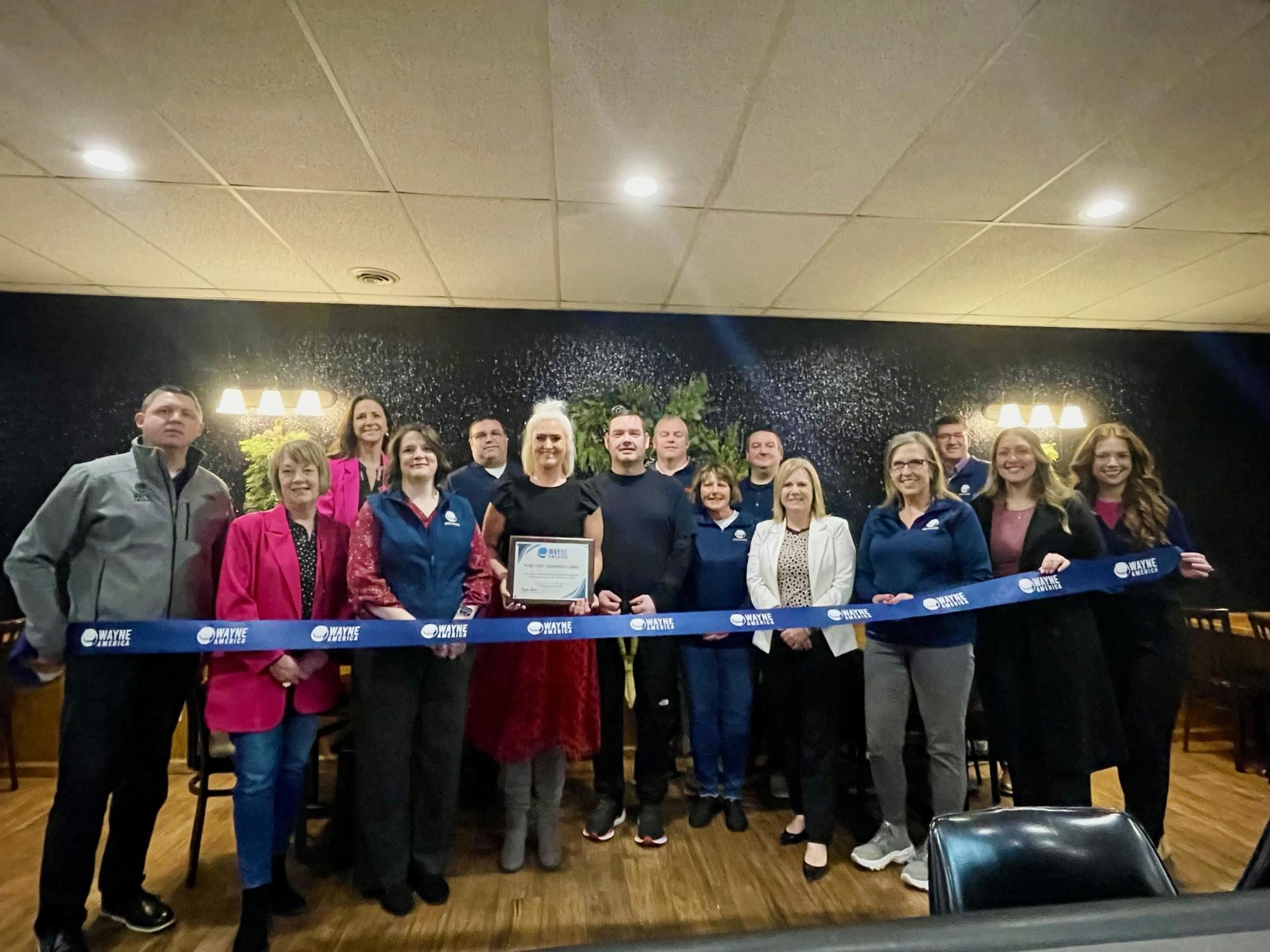 Pearl Street Steakhouse & Lounge, owned by Steve and Brittany Webber, hosted Chamber Coffee and a Ribbon Cutting Ceremony on Valentine's Day to celebrate their grand opening at 121 W. 1st Street in Wayne. Community members, Wayne America ambassadors, Valentine's Day enthusiasts, and local business owners were in attendance to network, enjoy churros freshly made by Steve, take photos in front of a holiday-themed wall, and celebrate the new addition to Wayne's downtown.